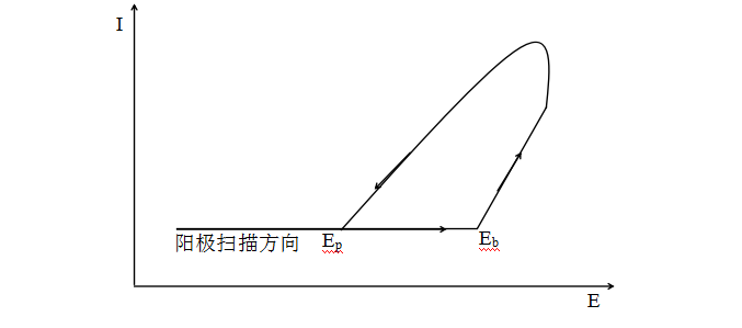 恒電位正反掃描法是研究點蝕行為較常用的電化學方法,其原理示意圖如圖1所示。將電極陽極極化到一定電位后電流會突然增加,這個電位稱為擊穿電位Eb。當電流超過某個設定值后將電位反向掃描,直**極化電流恢復到鈍化電流,此時的電位稱為保護電位Ep。擊穿電位越正,材料的耐點蝕性能越好,擊穿電位和保護電位之間的差值越小材料的耐點蝕性能越好。