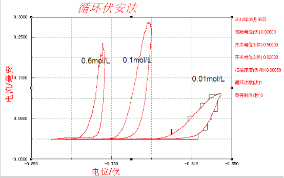 (2)選取0.5mv/s 時不同濃度的對比圖