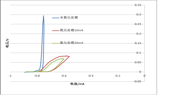 由圖對比可得處理后的電極比原電**有更大的擊穿電壓,起到了保護作用,有更強的抗腐蝕性。