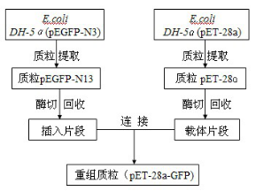 BL-21為本實(shí)驗(yàn)室收藏菌種,質(zhì)粒 pET-28a 和 pEGFP-N3,引物,限制性?xún)?nèi)切酶 Bam H1、 Not Ⅰ購(gòu)自大連寶生物工程有限公司。