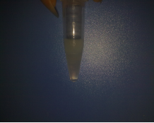 2) 離心,使溶液聚集在管底部。